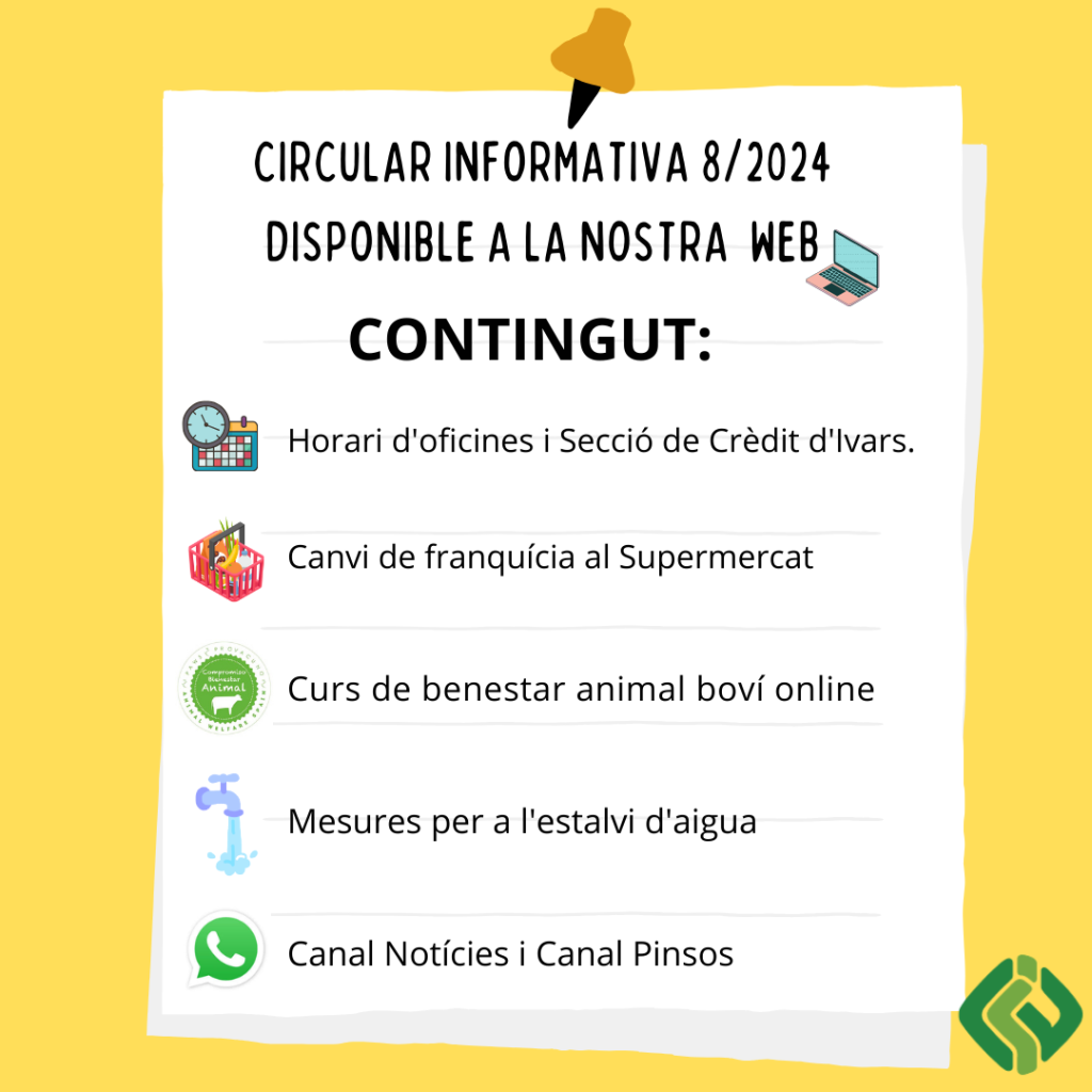 Us traslladem la circular informativa número 8 del 2024 amb el següent contingut: