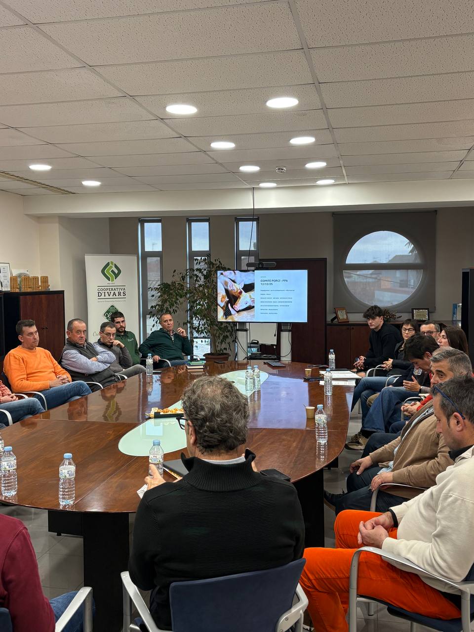 Ante la aparición de un brote de Peste Porcina Africana (PPA) en Cataluña, esta tarde se ha reunido el Comité de Porcino de la Cooperativa de Ivars, junto con varios asociados titulares de explotaciones de ganado porcino, el Director de Desarrollo Rural del Departamento de Agricultura, Ganadería, Pesca y Alimentación de la Generalitat, y miembros de la Dirección de la Cooperativa.