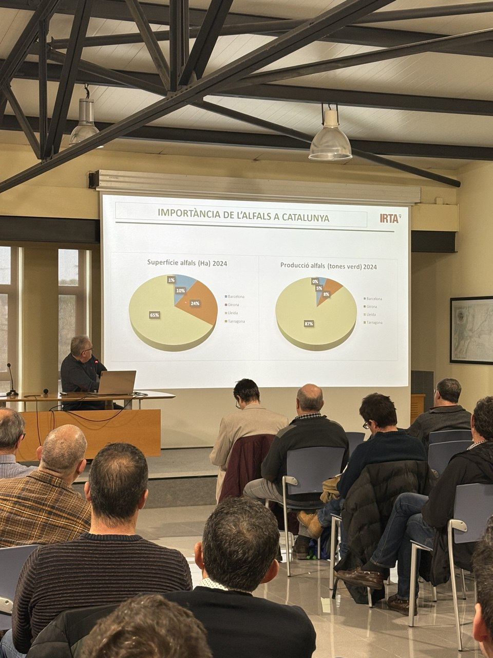 Cultivo de alfalfa: Se destacó la complejidad de su experimentación, ya que se trata de un cultivo plurianual con múltiples siegas. A pesar de que la superficie dedicada ha disminuido en los últimos años, la producción se ha reducido en una proporción superior a la de la superficie cultivada, según Josep A. Betbesé (IRTA).
